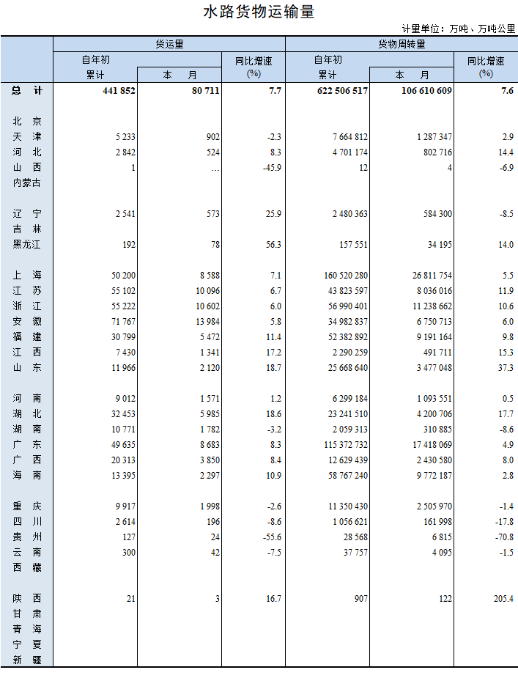 2023年6月水路貨物運輸量