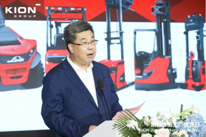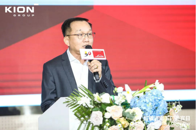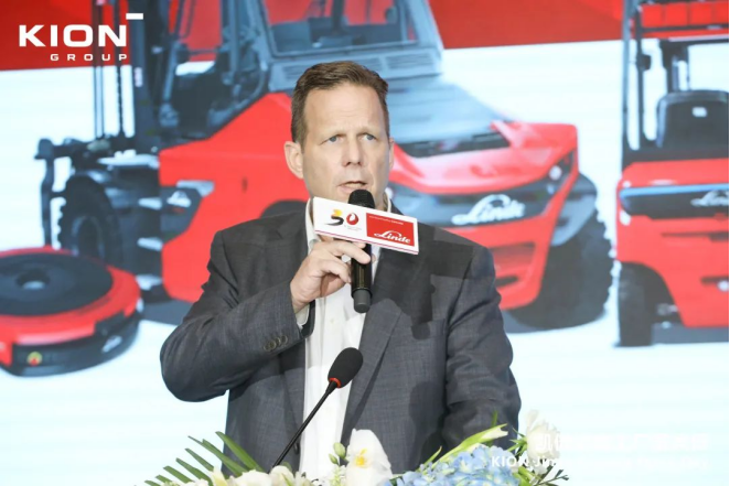 在慶典儀式上,凱傲集團董事兼凱傲亞太及美洲區總裁郭進鵬首先發表了歡迎致辭,向來賓介紹了林德物料搬運在華三十年的發展,他表示:今天的林德物料搬運在中國擁有60多個分公司,400多個銷售服務網點,覆蓋260多個城市,服務了4萬多家企業客戶,在外資叉車品牌中的份額遙遙領先。2022年,林德物料搬運在全部外資品牌叉車中的份額占比接近四分之三。