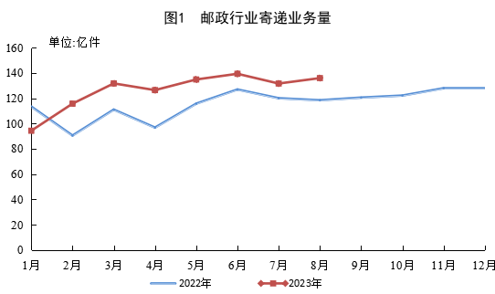 8月份,郵政行業寄遞業務量完成135.9億件,同比增長14.8%。其中,快遞業務量完成111.6億件,同比增長18.3%。