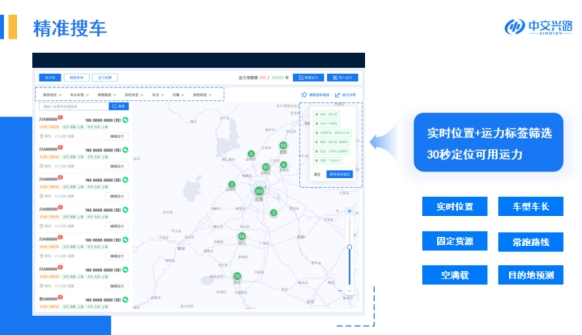 精準(zhǔn)搜車。平臺(tái)將車輛的實(shí)時(shí)位置、車型車長(zhǎng)、常跑路線、是否固定貨源、空滿載率、目的地預(yù)測(cè)等進(jìn)行標(biāo)簽化呈現(xiàn),提高調(diào)度員對(duì)可選車輛的篩選效率,從而提升車貨匹配的調(diào)度效率。