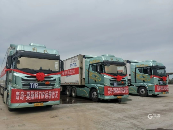 儀式現場,解放青汽鷹途作為TIR運輸車輛,滿載包裝材料、建材、輪胎等貨物,在膠州海關的監管下,從位于中國傳化(上合)國際物流港海關監管作業場所內的TIR國際道路運輸集結中心順利啟動出發,預計8天后這批貨物將到達9800公里外的俄羅斯首都莫斯科,完成上合示范區首次中俄TIR專線國際道路運輸。這是山東省首條中俄TIR道路運輸專線,也是山東省與歐亞大陸互聯互通的新通道。