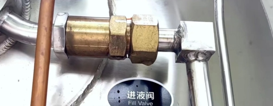 緊接著是進(jìn)液閥,進(jìn)液閥也叫進(jìn)液單向閥,它是單方向流動的,有了它就可以阻止加入氣瓶內(nèi)的液體流出了。