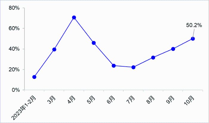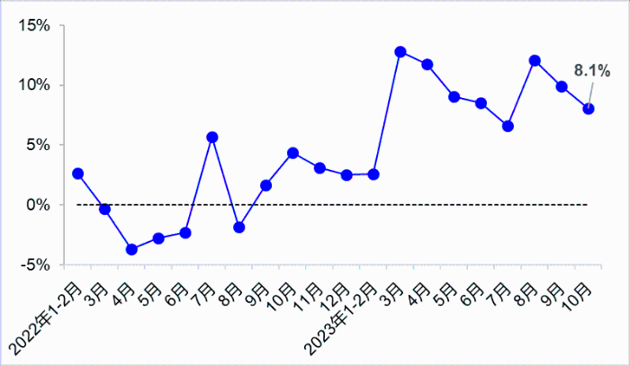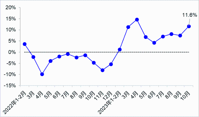 10月,完成營業性貨運量48.3億噸,同比增長11.6%。其中,完成公路貨運量35.5億噸,同比增長12.7%;完成水路貨運量8.4億噸,同比增長11.1%。