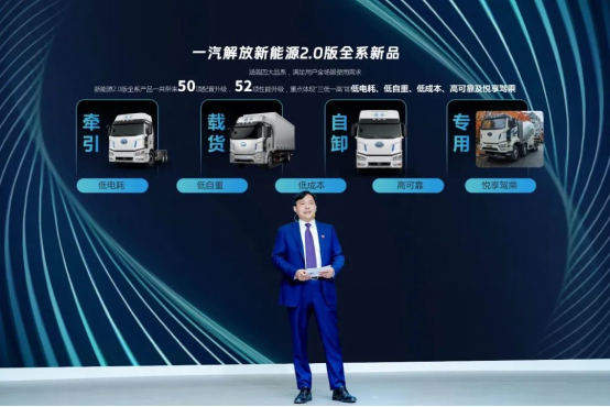 毋庸置疑,新能源賽道是商用車行業面向綠色發展的必由之路。在國家“雙碳”目標的推動下,一汽解放搶抓新能源市場機遇,加速落實“15333”新能源戰略。目前,解放已完成J7、JH6、J6L、J6F等重、中、輕、微、客全系列百余款新能源產品投放,成功實現了“傳統車電動化”。
