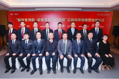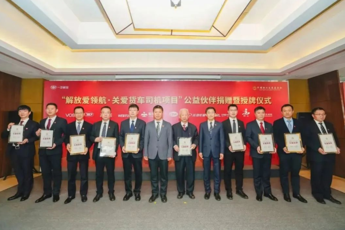 1月11日,“解放愛領航·關愛貨車司機項目”公益伙伴捐贈暨授牌儀式在長春舉行。中國職工發展基金會理事長武建光,中國一汽工會副主席姬小明,一汽解放黨委副書記、工會主席張國華以及10家供應商企業負責人參加儀式,一汽解放職能部相關領導、媒體代表共同見證這一歷史時刻。儀式由一汽解放黨群工作部部長任瑞杰主持。