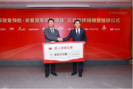 儀式上,一汽解放向“解放愛領航·關愛貨車司機項目”捐贈200萬元。