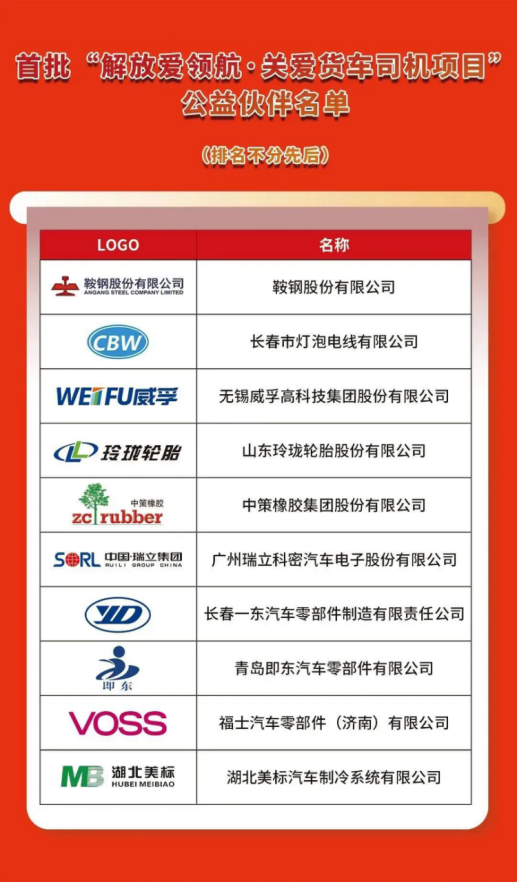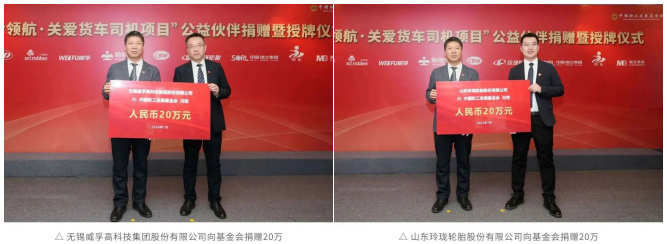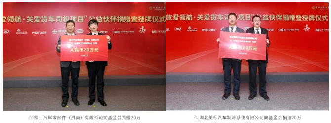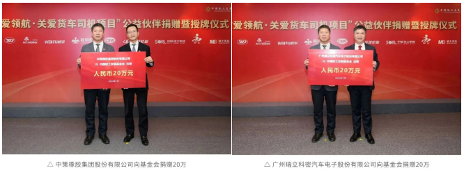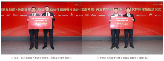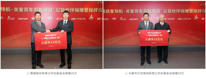 鞍鋼股份、長春燈泡、無錫威孚、玲瓏輪胎、中策橡膠、瑞立科密、長春一東、青島即東、福士(濟南)、湖北美標等10家供應商伙伴依次向基金會捐贈,每家20萬元。