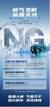 同期,一汽解放適時(shí)推出“NG發(fā)動(dòng)機(jī)”專屬政策。2023年8-10月期間,購買解放天然氣車的首任車主,享有解放CA6SM4和CA6SM3(CNG)發(fā)動(dòng)機(jī)缸體、曲軸、缸蓋、連桿、凸輪軸保質(zhì)期5年不限里程的專屬服務(wù)政策。為選擇解放天然氣車型的用戶提供超長質(zhì)保、不限里程的感動(dòng)服務(wù)。