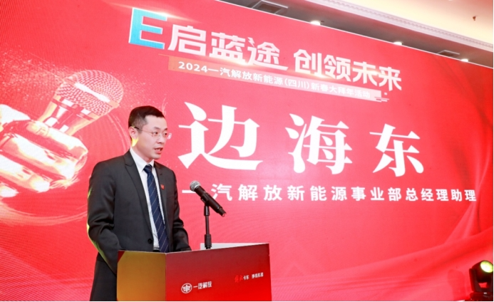 1月18日,一汽解放“E啟藍途 創領未來”新春大拜年活動登陸四川成都,向區域客戶“拜早年”,同時解放帶來多款2024新能源重頭產品。其間,一汽解放新能源事業部總經理助理邊海東向來賓介紹了解放的發展歷程,以及在新能源領域的卓著成果,表達了解放人將踐行“碳達峰、碳中和”戰略,搶抓新能源發展機遇,持續將“解放”打造成為中國第一、世界一流的綠色智能交通運輸解決方案提供者,促進社會更加繁榮。