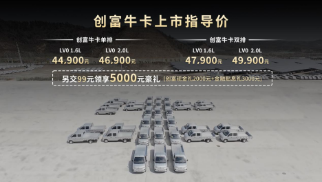 3月27日,定位為“寬適重載新卡”的創富??ㄕ缴鲜小M瞥?.6升、2.0升兩種動力共4款車型,全方位滿足不同用戶的使用需求。指導價區間為:44900元-49900元。其中,單排款僅需44900元起;雙排款47900元起,即日起正式開售。相比同級主流產品,創富??ǜ咝詢r比,用戶可節省至少3000元,輕松開啟創富路。同時,二手車殘值更高,可多賣約3000元。
