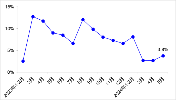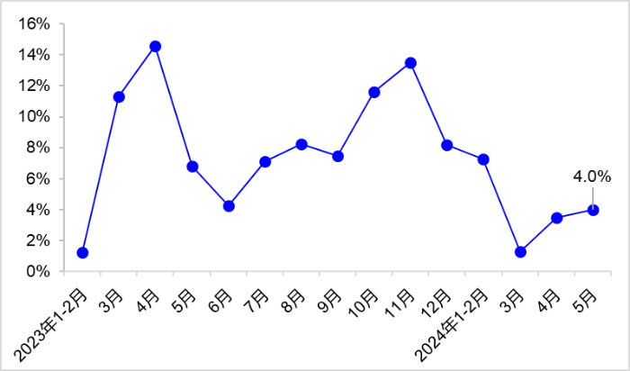 5月,完成營(yíng)業(yè)性貨運(yùn)量49.0億噸,同比增長(zhǎng)4.0%,增速較4月加快0.5個(gè)百分點(diǎn)。其中,完成公路貨運(yùn)量36.2億噸,同比增長(zhǎng)3.5%;完成水路貨運(yùn)量8.4億噸,同比增長(zhǎng)6.5%。