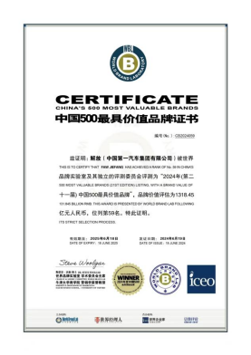6月19日,第二十一屆“世界品牌大會”在北京舉行。會上,世界品牌實驗室發(fā)布了2024年《中國500最具價值品牌》分析報告,中國一汽2024年品牌價值為4605.49億元,蟬聯(lián)汽車行業(yè)第一,連續(xù)21年上榜中國500最具價值品牌。