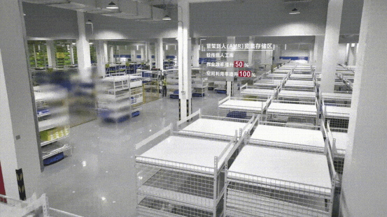 為兼容不同物料的存取,林德在客戶的智能倉庫內,規劃設計了“CTU料箱到人存儲區”和“AMR貨架到人存儲區”的兩種倉儲區域,實現了對各類零部件的分類存儲和高效管理。