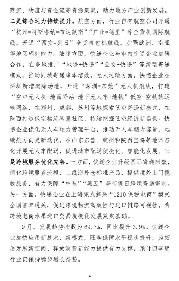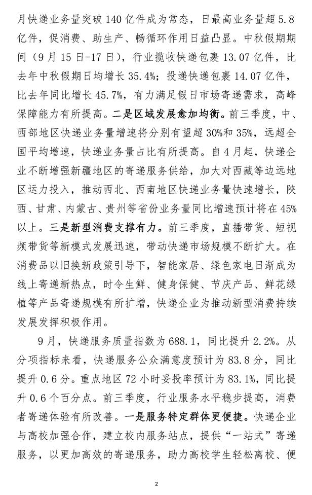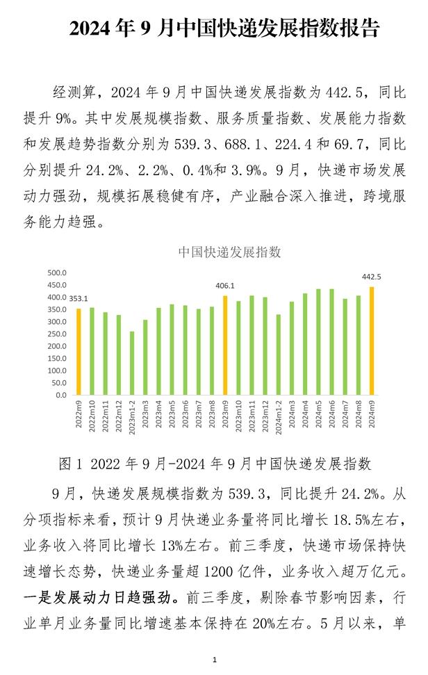 2024年9月中國快遞發(fā)展指數(shù)報告