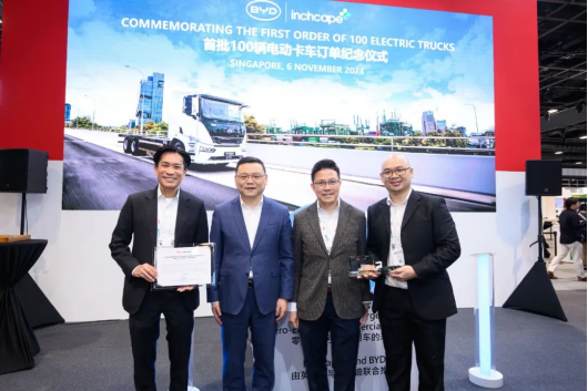 在展會現場,比亞迪T9R憑借其卓越的性能和可靠的質量,贏得了國際同行的高度評價,并獲得了新加坡英之杰(Inchcape+)100臺T9R電動卡車的大額訂單。這是比亞迪在新加坡最大批量的單筆電動重卡采購,預計將在2025年第二季度交付。而得益于比亞迪商用車的強大實力和在新加坡市場的深厚積淀和多方面的努力,比亞迪電動重卡在新加坡市占率超90%,成為當之無愧的龍頭企業。