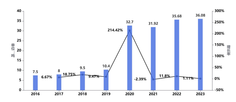 2016-2023年公路載貨車輛平均噸位及增長