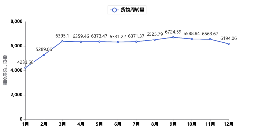2023年分月額定噸位周轉量(來自交通運輸部)