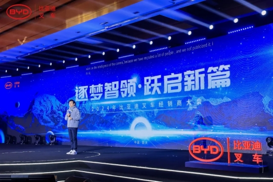 會(huì)上,比亞迪叉車回顧了2024年主要工作及2025年戰(zhàn)略規(guī)劃,引得現(xiàn)場(chǎng)歡呼聲不斷。