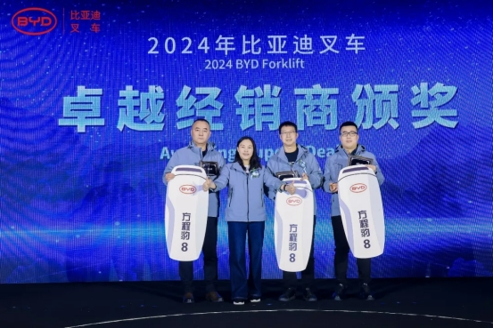 此次大會(huì),比亞迪叉車特別授予廣州佛朗斯股份有限公司、武漢世恒機(jī)械設(shè)備有限公司,山東景林綠色生態(tài)發(fā)展有限公司戰(zhàn)略合作伙伴獎(jiǎng);授予貨叉叉新能源(山東)集團(tuán)有限公司鉆石經(jīng)銷商獎(jiǎng);授予廣州市拓宏物流設(shè)備有限公司非凡經(jīng)銷商獎(jiǎng)。同時(shí),大會(huì)還頒發(fā)了飛躍成長(zhǎng)獎(jiǎng)、卓越經(jīng)銷商獎(jiǎng)、以及杰出經(jīng)銷商獎(jiǎng),表彰在過(guò)去一年中銷售業(yè)績(jī)突出的經(jīng)銷商,感謝他們對(duì)比亞迪叉車發(fā)展的杰出貢獻(xiàn)。