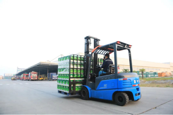 該企業構建了一個環保供應鏈,他們鼓勵供應商回收和再利用包裝材料,并積極推廣使用綠色物流配送工具,目的是其在生產和運輸過程中減少固體廢物的產生。在該企業建立的智能化食品飲料生產基地中,運用的正是比亞迪鋰電叉車。
