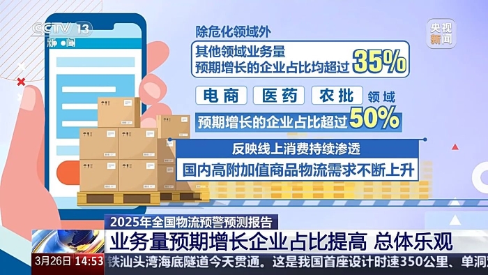 中國(guó)物流信息中心近日發(fā)布《2025年全國(guó)物流預(yù)警預(yù)測(cè)報(bào)告》。報(bào)告對(duì)1000多家物流企業(yè)展開(kāi)問(wèn)卷調(diào)查。調(diào)查數(shù)據(jù)顯示,企業(yè)對(duì)2025年經(jīng)營(yíng)情況總體呈現(xiàn)樂(lè)觀態(tài)勢(shì),業(yè)務(wù)量預(yù)期增長(zhǎng)的企業(yè)占比,較去年四季度有所提高。