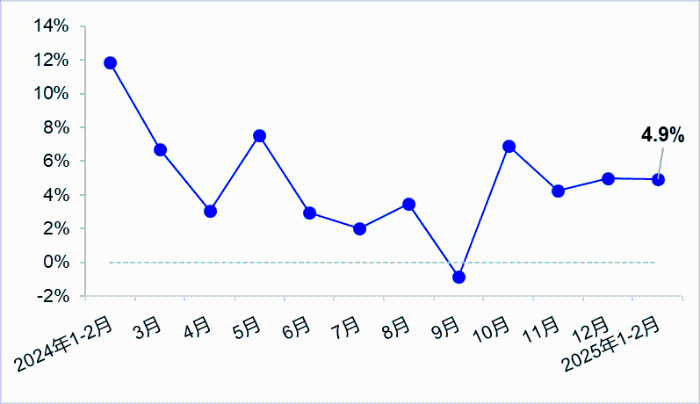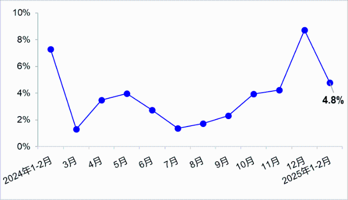 圖2?港口貨物吞吐量月度同比增速變化?