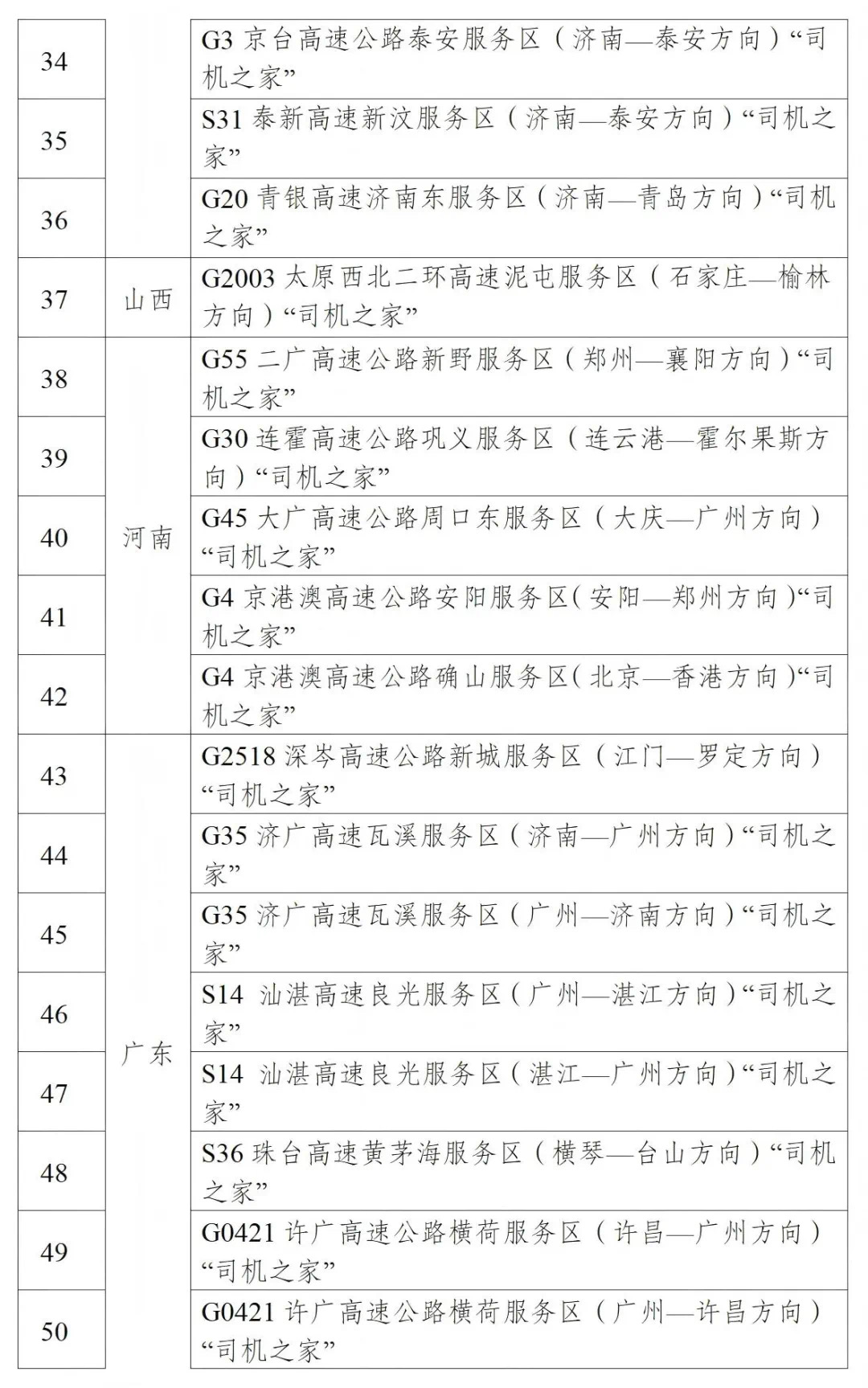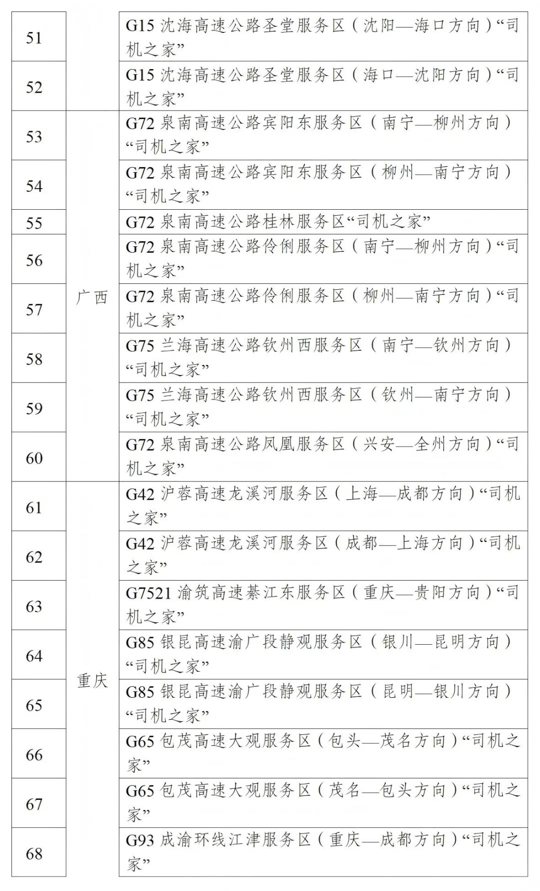 為進(jìn)一步改善貨車(chē)司機(jī)停車(chē)休息環(huán)境,交通運(yùn)輸部、中華全國(guó)總工會(huì)聯(lián)合印發(fā)通知,部署各地開(kāi)展高速公路服務(wù)區(qū)“司機(jī)之家”標(biāo)準(zhǔn)化規(guī)范化提升行動(dòng)。目前,已有100個(gè)高速公路服務(wù)區(qū)“司機(jī)之家”(名單如下)完成改造提升,為貨車(chē)司機(jī)提供停車(chē)休息、熱水供應(yīng)、飯菜加熱、淋浴、洗衣等免費(fèi)基本服務(wù)和可選擇的個(gè)性化服務(wù)。