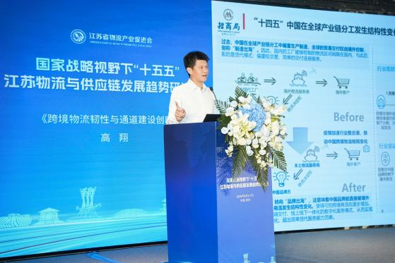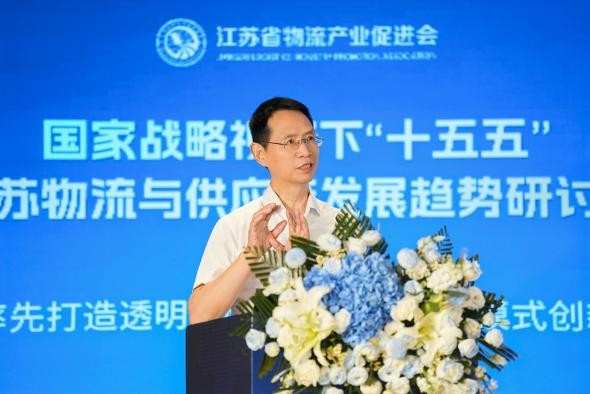 江蘇省物流與供應(yīng)鏈研究院院長、東南大學(xué)教授毛海軍,江蘇省數(shù)字經(jīng)濟聯(lián)合會副會長兼秘書長、江蘇創(chuàng)新生態(tài)研究院常務(wù)副院長卜安洵,中國外運股份有限公司總經(jīng)理高翔,蘇交科集團副總裁張海軍,分別聚焦“十五五”江蘇現(xiàn)代物流發(fā)展思路與重點、透明供應(yīng)鏈引領(lǐng)物流業(yè)模式創(chuàng)新、跨境物流韌性與通道建設(shè)創(chuàng)新、低空物流發(fā)展模式等話題,分享了對于江蘇物流與供應(yīng)鏈發(fā)展的思考與實踐。