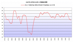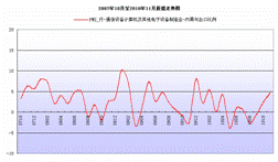 11月份,通信設備計算機及其他電子設備制造業內需與出口比例指數為4.6,比上月上升2.2個百分點,與去年同期相比上升7.1個百分點;利潤趨勢指數為-2.6,比上月下降3.0個百分點,與去年同期相比下降7.8個百分點。