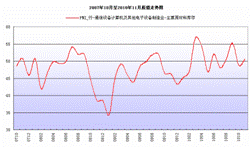 11月份,通信設備計算機及其他電子設備制造業雇員指數為51.8,比上月下降1.5個百分點,與去年同期相比上升2.5個百分點;供應商配送時間指數為48.7,比上月下降1.3個百分點,與去年同期相比下降2.0個百分點。