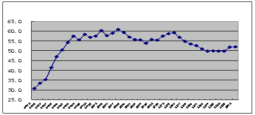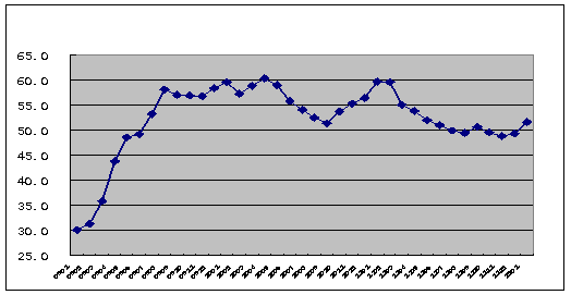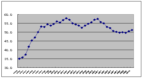 2009年1月-2012年1月全球制造業PMI指數走勢