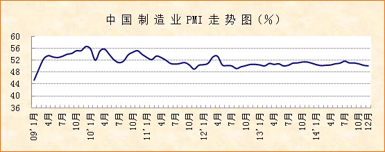 中國(guó)物流與采購(gòu)聯(lián)合會(huì)、國(guó)家統(tǒng)計(jì)局服務(wù)業(yè)調(diào)查中心發(fā)布的2014年12月份中國(guó)制造業(yè)采購(gòu)經(jīng)理指數(shù)(PMI)為50.1%,較上月回落0.2個(gè)百分點(diǎn),降幅收窄,反映出當(dāng)前經(jīng)濟(jì)下行態(tài)勢(shì)趨緩。從全年來(lái)看,制造業(yè)PMI平均水平50.7%,與前兩年平均水平基本相當(dāng),并未出現(xiàn)大幅下降,顯示經(jīng)濟(jì)運(yùn)行穩(wěn)定性增強(qiáng),增速處在適度合理區(qū)間。與此同時(shí),就業(yè)形勢(shì)良好,節(jié)能減排成效顯現(xiàn),經(jīng)濟(jì)運(yùn)行較為協(xié)調(diào);結(jié)構(gòu)調(diào)整加快,服務(wù)業(yè)和新興產(chǎn)業(yè)蓬勃發(fā)展,顯示經(jīng)濟(jì)運(yùn)行的平衡性明顯增強(qiáng)。綜合來(lái)看,新常態(tài)經(jīng)濟(jì)平臺(tái)正在形成,2015年經(jīng)濟(jì)運(yùn)行有望轉(zhuǎn)平穩(wěn)。