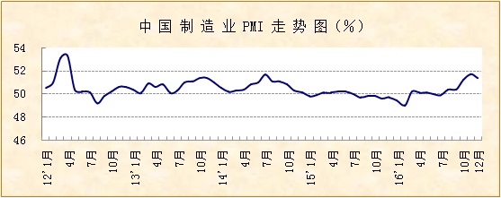 中國物流與采購聯(lián)合會、國家統(tǒng)計局服務(wù)業(yè)調(diào)查中心發(fā)布的2016年12月份中國制造業(yè)采購經(jīng)理指數(shù)(PMI)為51.4%,較上月回落0.3個百分點。指數(shù)回落主要受年底企業(yè)生產(chǎn)活動有所回落影響,但需求端基本保持平穩(wěn),經(jīng)濟整體趨穩(wěn)向好基本態(tài)勢沒有改變。從2016年全年來看,PMI指數(shù)穩(wěn)步小幅回升,顯示經(jīng)濟運行中的積極因素增多,企穩(wěn)態(tài)勢逐漸鞏固,向好發(fā)展態(tài)勢更為明顯,預(yù)計全年經(jīng)濟增長6.7%左右,年初預(yù)定目標(biāo)基本實現(xiàn)。