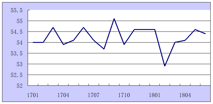 2017年-2018年6月綜合PMI產出指數走勢圖