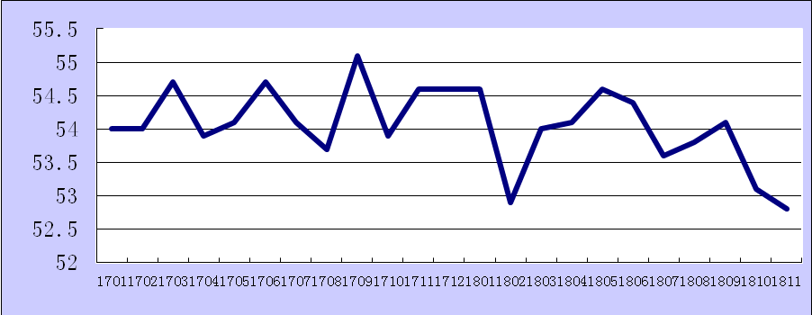 2017年1月-2018年11月綜合PMI產出指數走勢圖